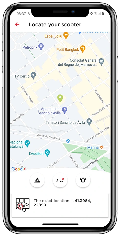 Sentez-vous en sécurité, sachant que votre moto est en sécurité où que vous soyez. Vous pouvez maintenant activer une alarme en cas de mouvement incorrect de la moto après 4 minutes d'arrêt du véhicule.