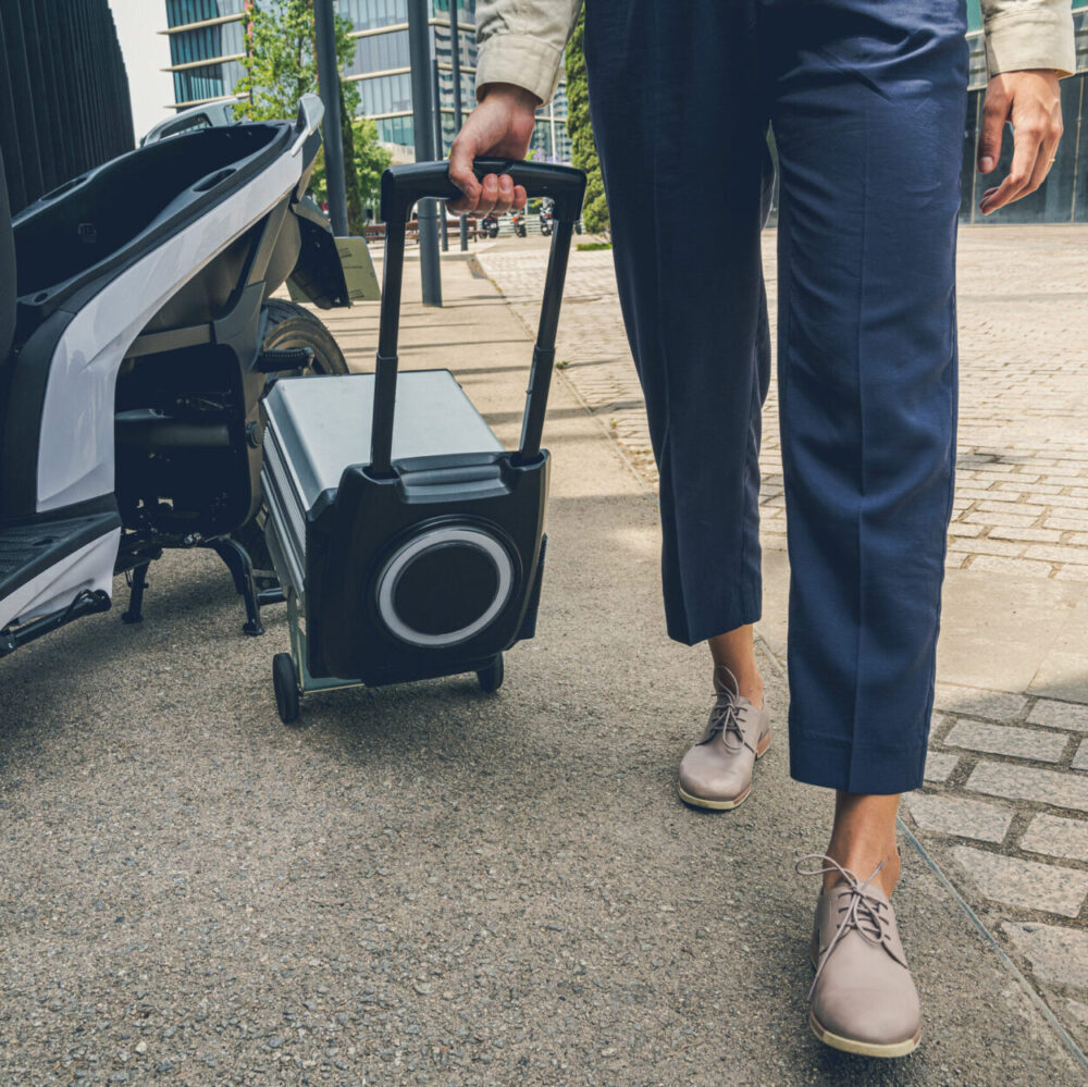 La partie située sous le siège du scooter électrique S01 est la plus spacieuse de toute la concurrence. Vous pouvez désormais y ranger votre casque et celui de votre passager. Le moteur intégré à la roue et la position de la batterie offrent un gain de place sous le siège et permettent de redéfinir un design pensé pour l’utilisateur.